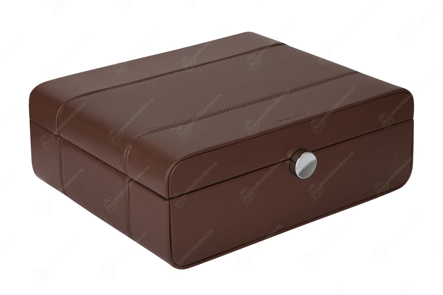Шкатулка для хранения 8 наручных часов, деревянный корпус отделан натуральной кожей с перфорированной вставкой.