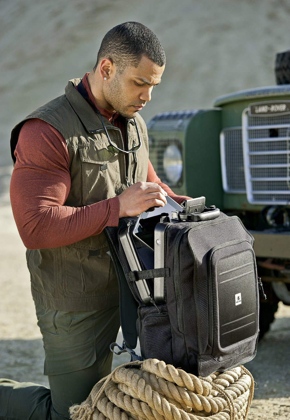 - В рюкзак интегрирован герметичный защитный кейс IP67 с замком застежкой и атмосферным клапаном для выравнивания давления.
